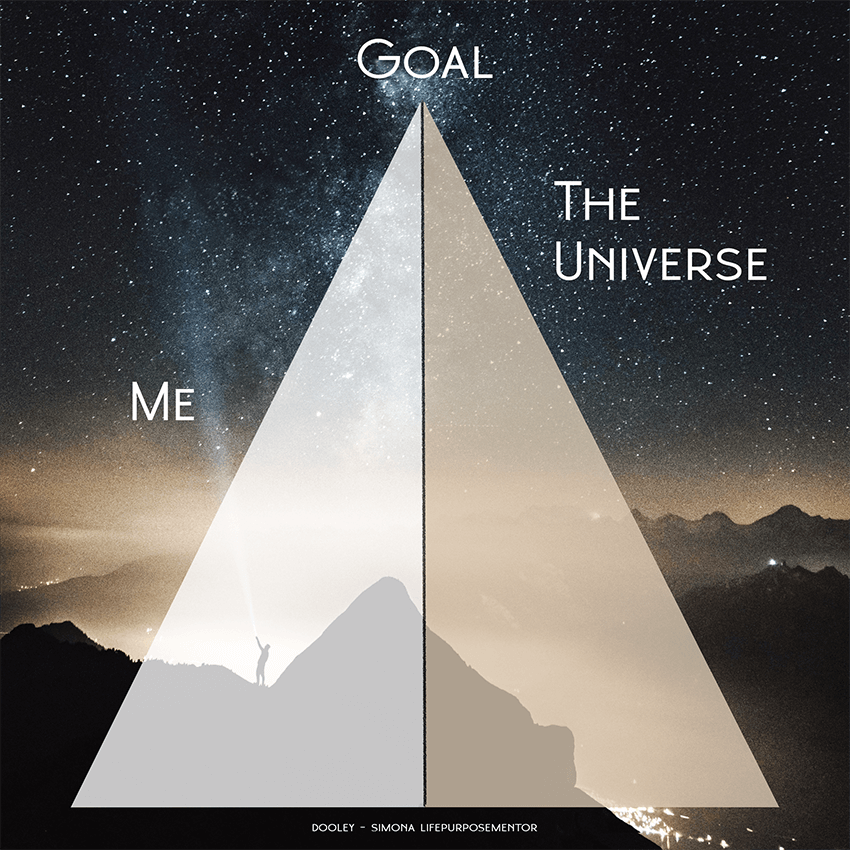And now comes the best part. Look at the whole triangle and you’ll realise that for your goal to be reached, both sides are equally needed, and will feed off each other. The universe won’t do much if you don’t set it in motion through your actions, and once it starts moving, your actions will become more and more inspired and easy and empowered.